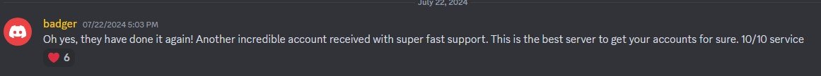 “This is the best server to get your accounts for sure!”